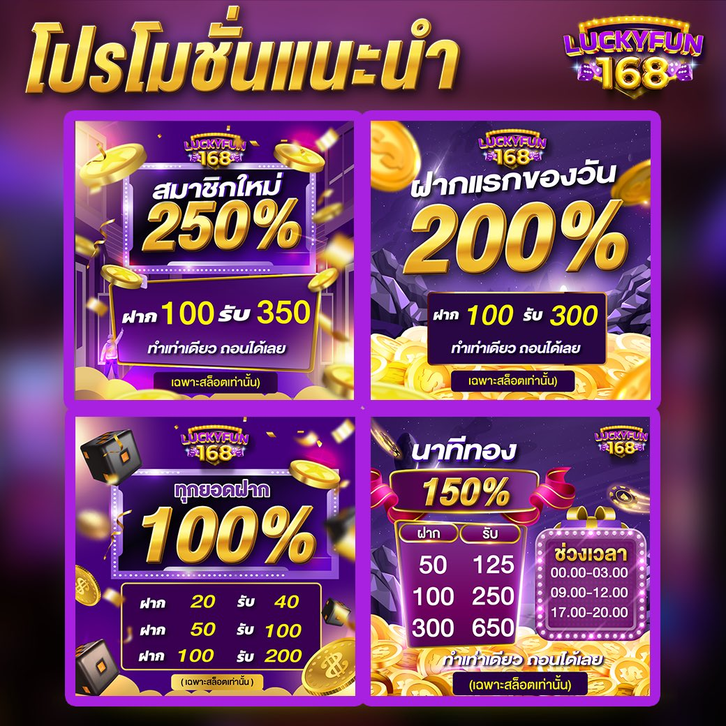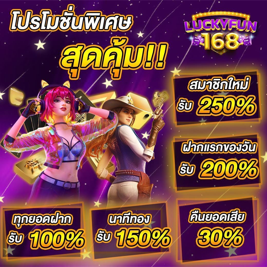 เพื่อนๆ นักพนันออนไลน์ทุกคนครับ วันนี้ผมจะมาแนะนำโปรโมชั่นสุดพิเศษจาก Luckyfun168 ที่จะทำให้การเดิมพันของคุณคุ้มค่ามากยิ่งขึ้น เริ่มต้นด้วยโบนัสแรกเข้าสุดคุ้มที่มอบให้ถึง 100% เลยทีเดียว นั่นหมายความว่าถ้าคุณฝากเงินครั้งแรก 1,000 บาท คุณจะได้รับเครดิตเพิ่มอีก 1,000 บาท รวมเป็น 2,000 บาททันที